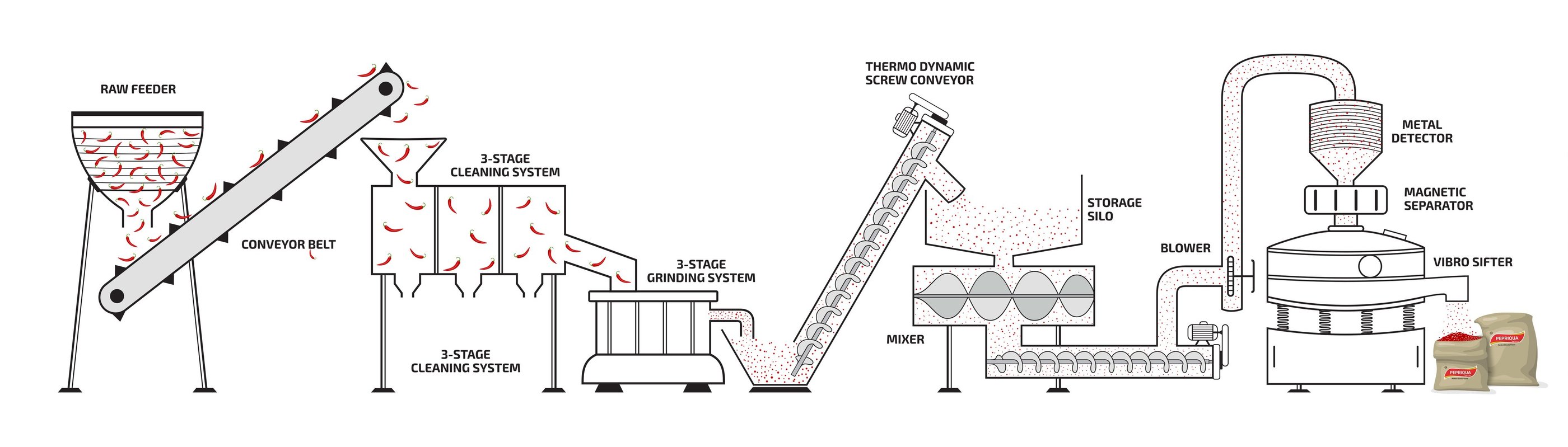 Fine Grinding: The dried vegetables are then ground into a fine powder using various types of grinders, such as hammermills or air classifiers.